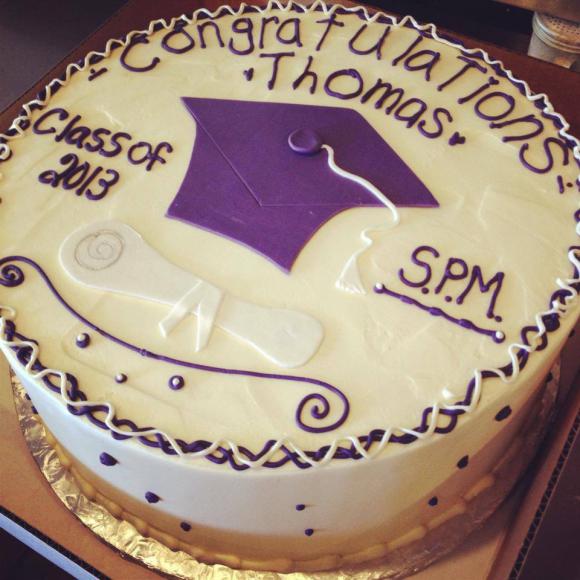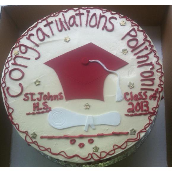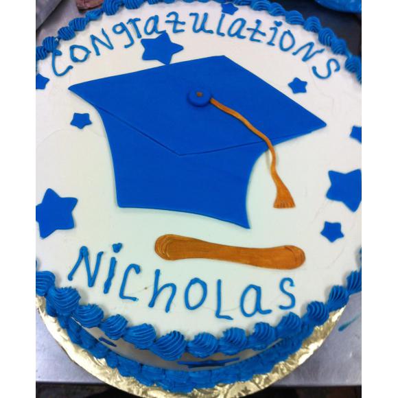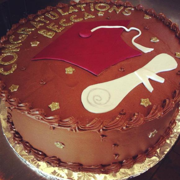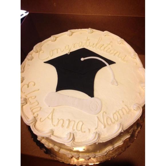 We offer our celebration and graduation cakes in a variety of sizes to best suit your needs. Our cakes are round and typically come in 6", 8", or 10" sizes and all cakes are made to order. For our graduation cakes we take whichever theme or color you would like and transform it into something worthy of your celebration!
