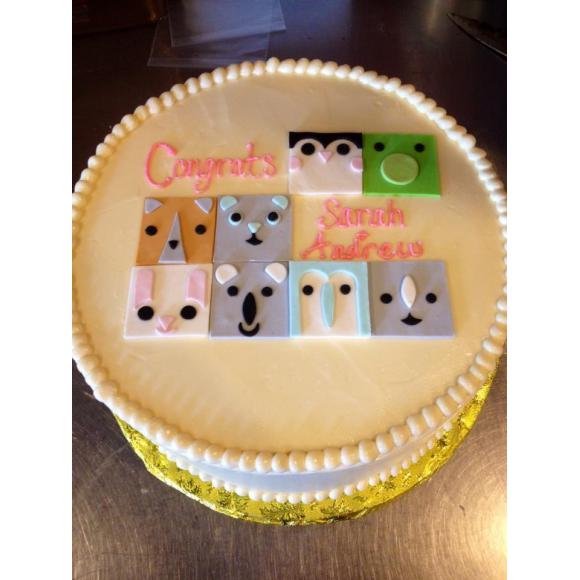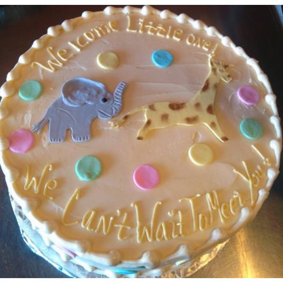 We offer our baby shower cakes in a variety of sizes to best suit your needs. Our cakes are round and typically come in 6", 8", or 10" sizes and all cakes are made to order. For our baby shower cakes we take whichever theme, color, or idea you would like and transform it into something as wonderful as the new joy you're celebrating!